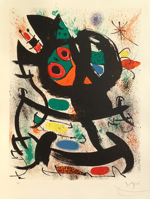 Original Joan Miro Lithograph in colors, on Arches paper. From the numbered edition of 100 and signed in pencil by the artist lower right.
