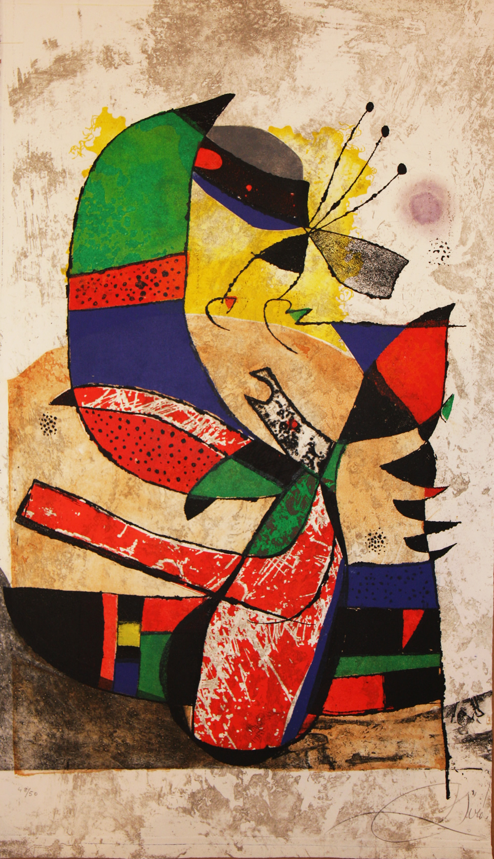 Original Joan Miro Etching, in colors, from the signed and numbered edition of 50 on Arches paper.